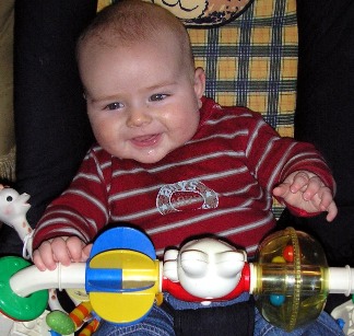 Here is a quick view of baby development milestones to help you keep track of your son's development. For your convenience, I include a table of milestones your son should be reaching. But do keep in mind that every child develops at his own pace, so try not to stress!